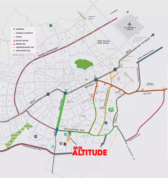 Strategically connected to major business hubs and retail destinations. Nearby renowned hospitals include Medicity, Artemis, and Fortis, along with prestigious schools like St. Xaviers High School, DPS International, and Heritage School etc.